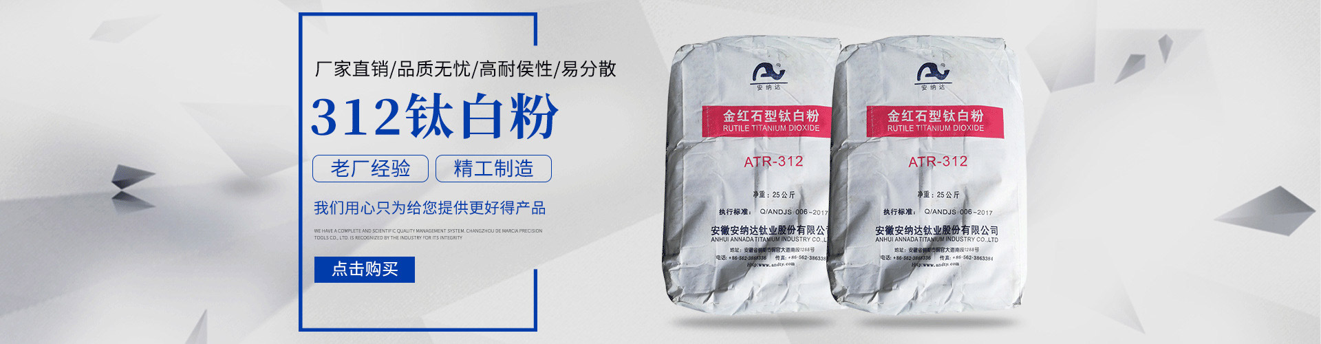 常州安鈦化工有限公司經(jīng)銷批發(fā)的鈦白粉、沉淀硫酸鋇、立德粉、滑石粉、高嶺土、炭黑、云母粉、彩色顏料、氫氧化鈣、硅微粉、氧化鐵紅、氧化鐵黑、金紅石型鈦白粉、銳鈦型鈦白粉、進口鈦白粉暢銷消費者市場,在消費者當中享有較高的地位,公司與多家零售商和代理商建立了長期穩(wěn)定的合作關(guān)系。常州安鈦化工有限公司經(jīng)銷的鈦白粉、沉淀硫酸鋇、立德粉、滑石粉、高嶺土、炭黑、云母粉、彩色顏料、氫氧化鈣、硅微粉、氧化鐵紅、氧化鐵黑、金紅石型鈦白粉、銳鈦型鈦白粉、進口鈦白粉品種齊全、價格合理。常州安鈦化工有限公司實力雄厚,重信用、守合同、保證產(chǎn)品質(zhì)量,以多品種經(jīng)營特色和薄利多銷的原則,贏得了廣大客戶的信任。